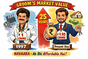 या घटनेतून एक गोष्ट ठामपणे सिद्ध होते ती म्हणजे महागाईचे चटके देणाऱ्या सध्याच्या चलनवाढीच्या काळात गेल्या पंचवीस वर्षांतील नवऱ्याचे बाजार मूल्य क्वचितच वाढल्याचे आढळते.