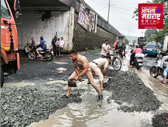 वसईत पोलीस बुजवताहेत महामार्गावरील खड्डे